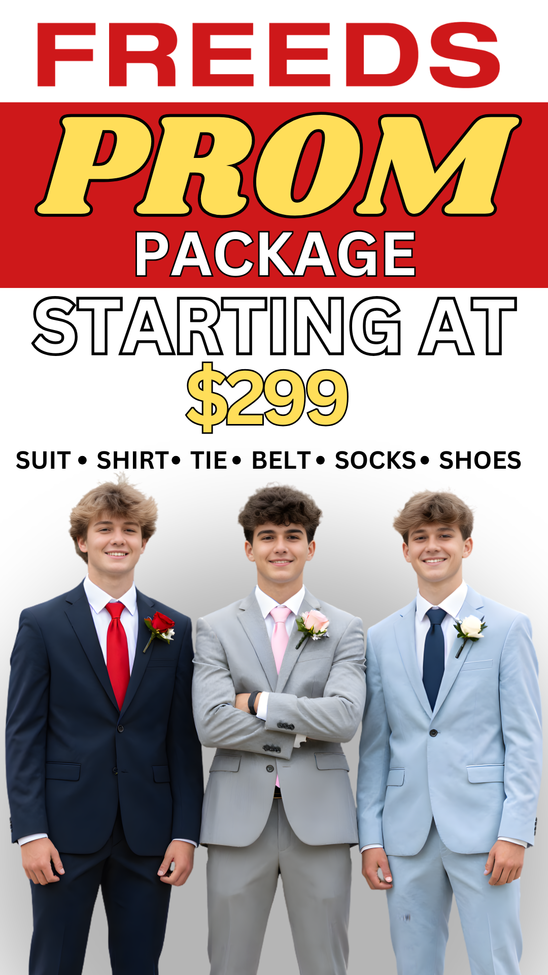 For just $299, get a complete look: suit, shirt, tie, belt, socks, and shoes! Discover why FREEDS is Windsor's top choice for suits today!