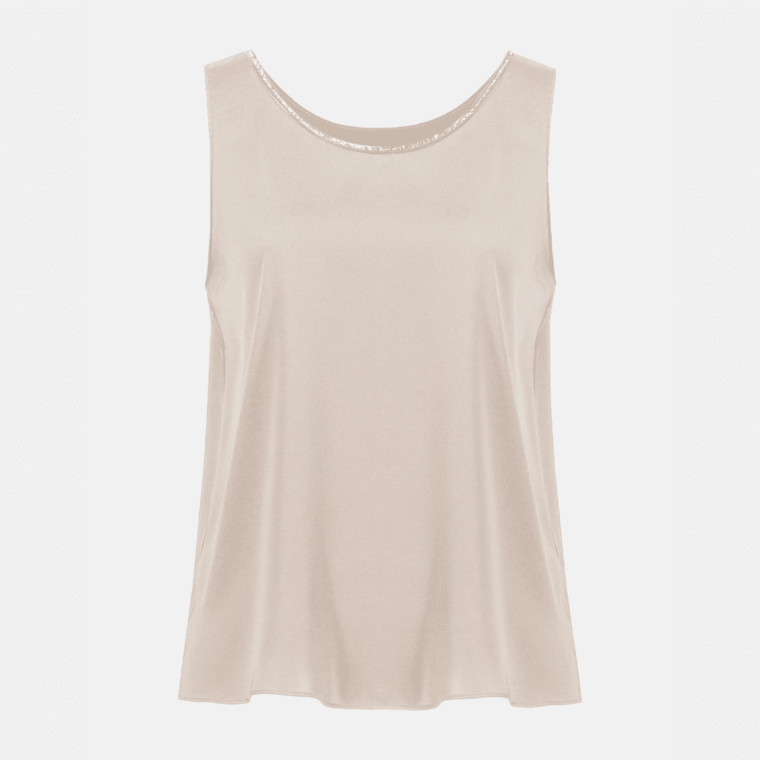 Crafted from smooth recycled satin, this elevated sleeveless top is the perfect way to add a touch of glamour to any outfit. The sparkling rhinestone trim at the neckline lends a hint of elegance, making it a versatile wardrobe essential. Wear it on its own for a chic statement or layer it under a blazer for an effortless style upgrade. Part of the Signature Collection.