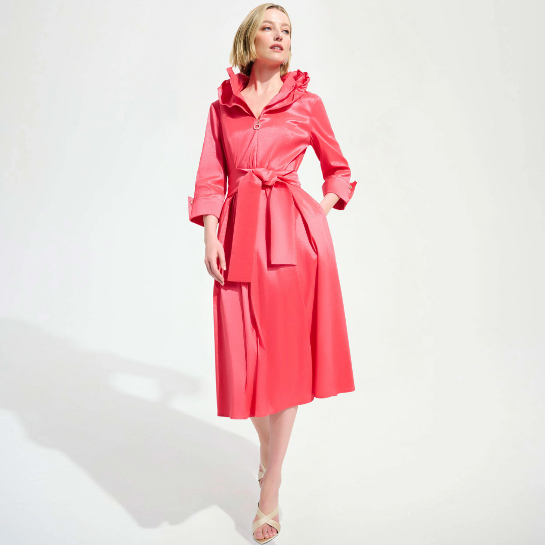 Joseph Ribkoff- Stretch Taffeta Fit And Flare Dress With Lapel Collar