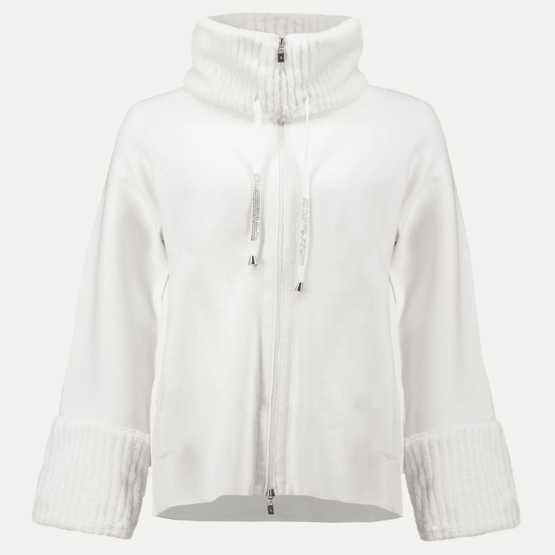 Joseph Ribkoff- Sweater Knit Coat With Fur Trim (White)