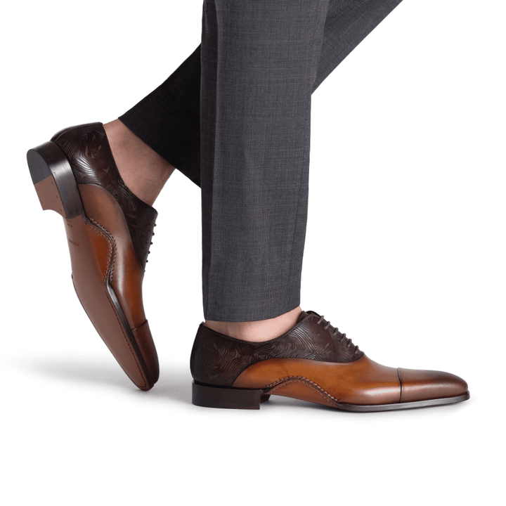 The Ximon is a sleek, mixed-media Oxford with a cap toe. The Ximon features folded stitching and a laser-etched design for a unique texture and aesthetic along the vamp and heel. The Ximon features our famous double Artesano sole, where the sole is wrapped onto the upper on both the inner and outer arch and then hand-stitched by our master artisans. Our signature Bologna construction wraps the foot in leather creating a cushioned footbed and unrivaled flexibility.