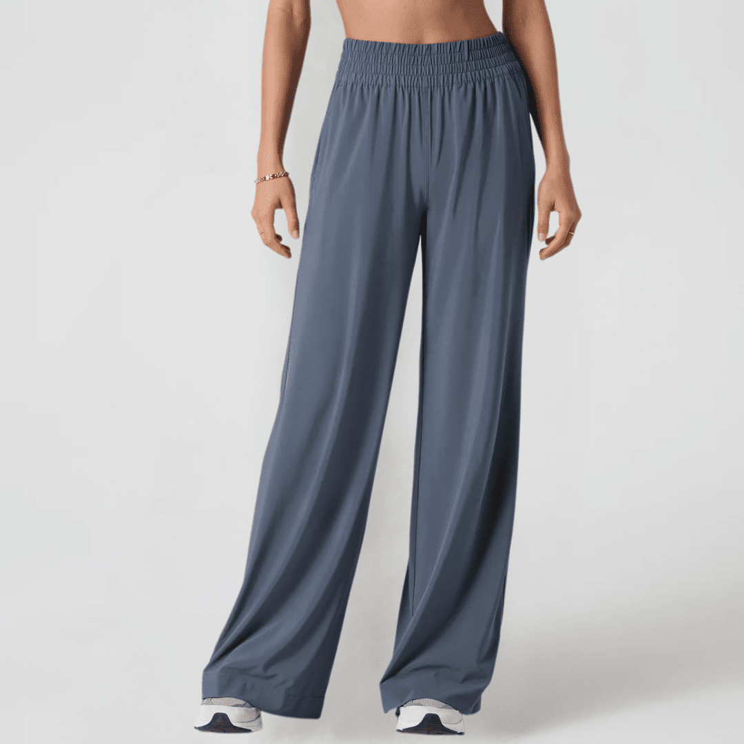 Feel ready to move. The ultra wide-leg pant in our silky soft, partly recycled performance stretch fabric is naturally wrinkle-free and moisture-wicking. With a relaxed fit, soft elastic waistband, and silk-like fabric, the Villa Wideleg is a modern basic that will be your new suitcase staple. This pant is styled long for a breezy look—let the hems sweep the ground or wear it with a heel.