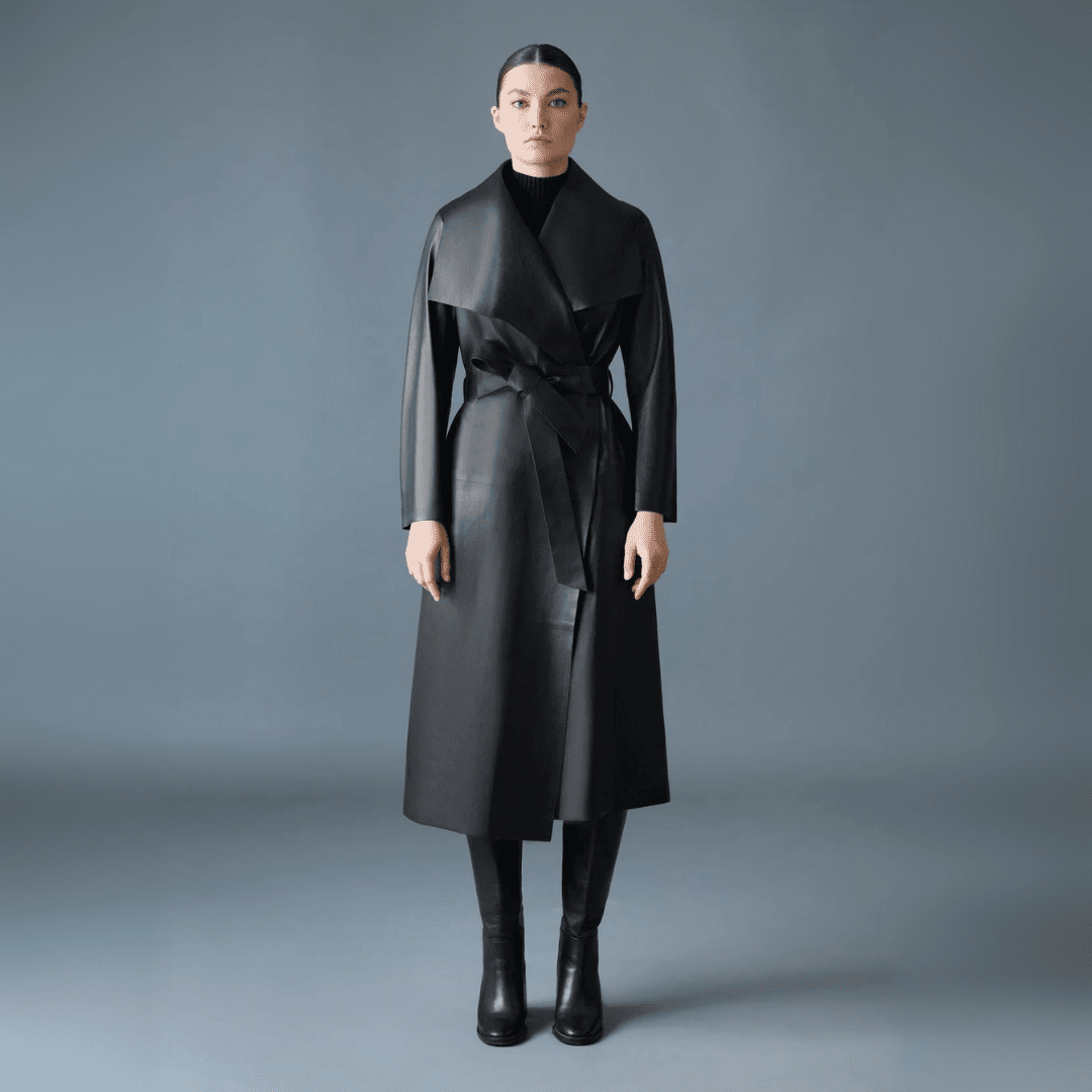 MAI is a maxi-length wrap coat cut to a relaxed unlined silhouette. Crafted from premium leather, it features a sculptural waterfall collar and a sash belt to cinch the waist. Minimalist yet elevated, a sophisticated interseasonal layer.